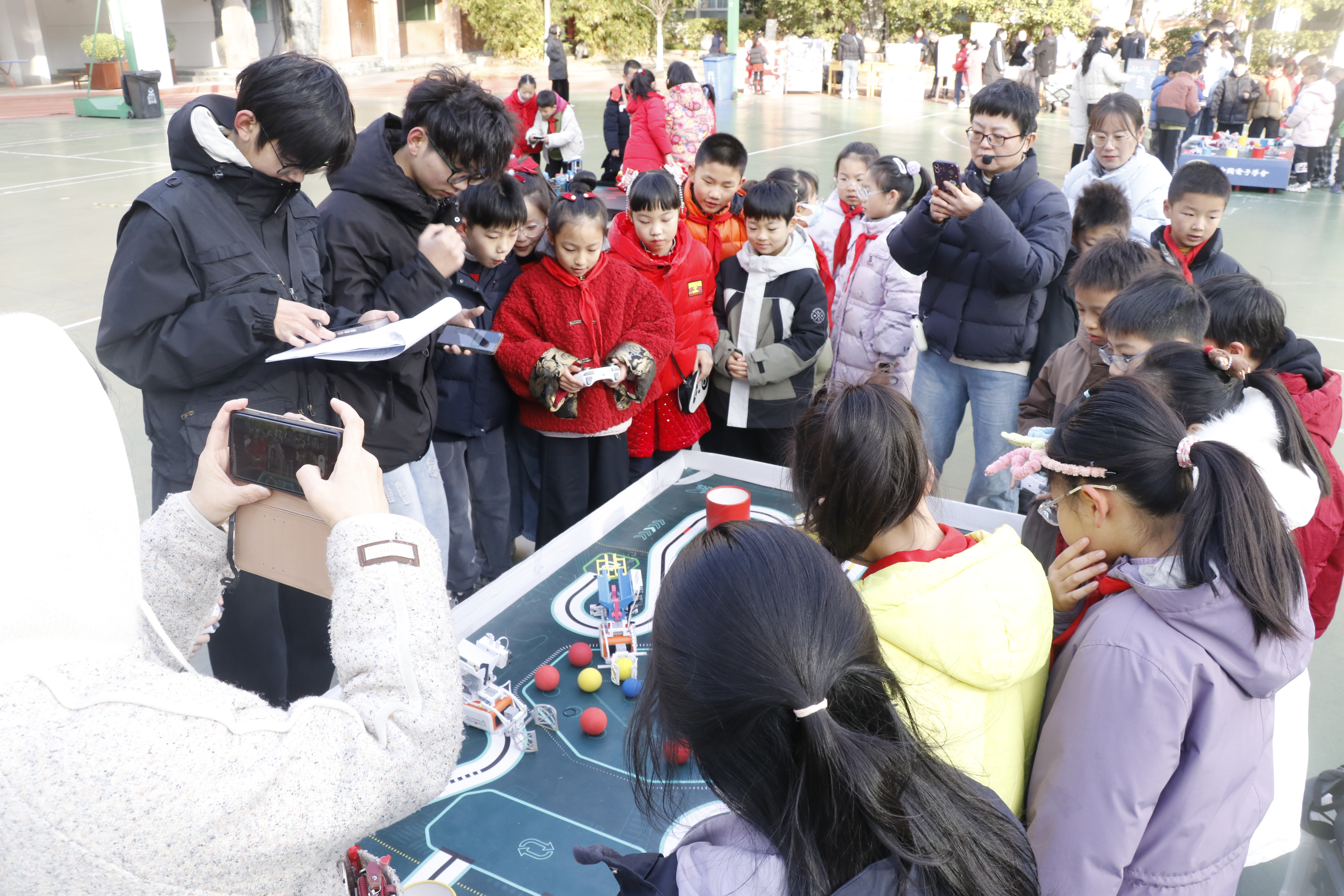 2025年12月31日上午,中山路小学举办“瑞蛇衔福别旧年 骏马扬蹄赴新程”游园活动,现场热闹非凡。6304团队受邀参加并担任“星土分配”“MakeX Starter”“MAKEX Explorer”等活动裁判。 比赛临近,各班选手陆续抵场。裁判确认全员到齐后,随着“比赛开始”令下,较量开场。现场观赛同学热情助威,加油声给选手鼓劲。赛场上选手全神贯注操控机器,生怕一个小失误失利。一番比拼,优秀选手胜出。刹那,现场欢呼震耳,小朋友兴奋蹦跳,气氛达高潮。参观时间到,更多小朋友聚来,我们团队成员从裁判变教学员,耐心专业引导操作、解答问题,欢声笑语很快在校园传开。 团队成员在活动中全身心投入。筹备时,围坐研讨制定出科学有趣、贴合孩子特点的比赛规则。比赛当天,作为裁判,他们专注严谨,观察选手操作、依规评判,选手失误时安慰鼓励,成功时送上掌声赞扬。 这场充满科技魅力与童真欢笑的游园盛会渐入尾声,我们团队作为裁判组成员,在见证少年们指尖跃动的智慧火花时,更深切感受到教育创新的蓬勃生机——那些专注调试机器的侧影,那些为队友呐喊时涨红的小脸,无不昭示着新时代少年"以科技为翼,驭梦想驰骋"的昂扬姿态。这场跨年科技嘉年华不仅为2025年画上了璀璨的惊叹号,更在孩子们心中播撒下探索未知的种子,待来年春风化雨,必将绽放出更加绚烂的创新之花。