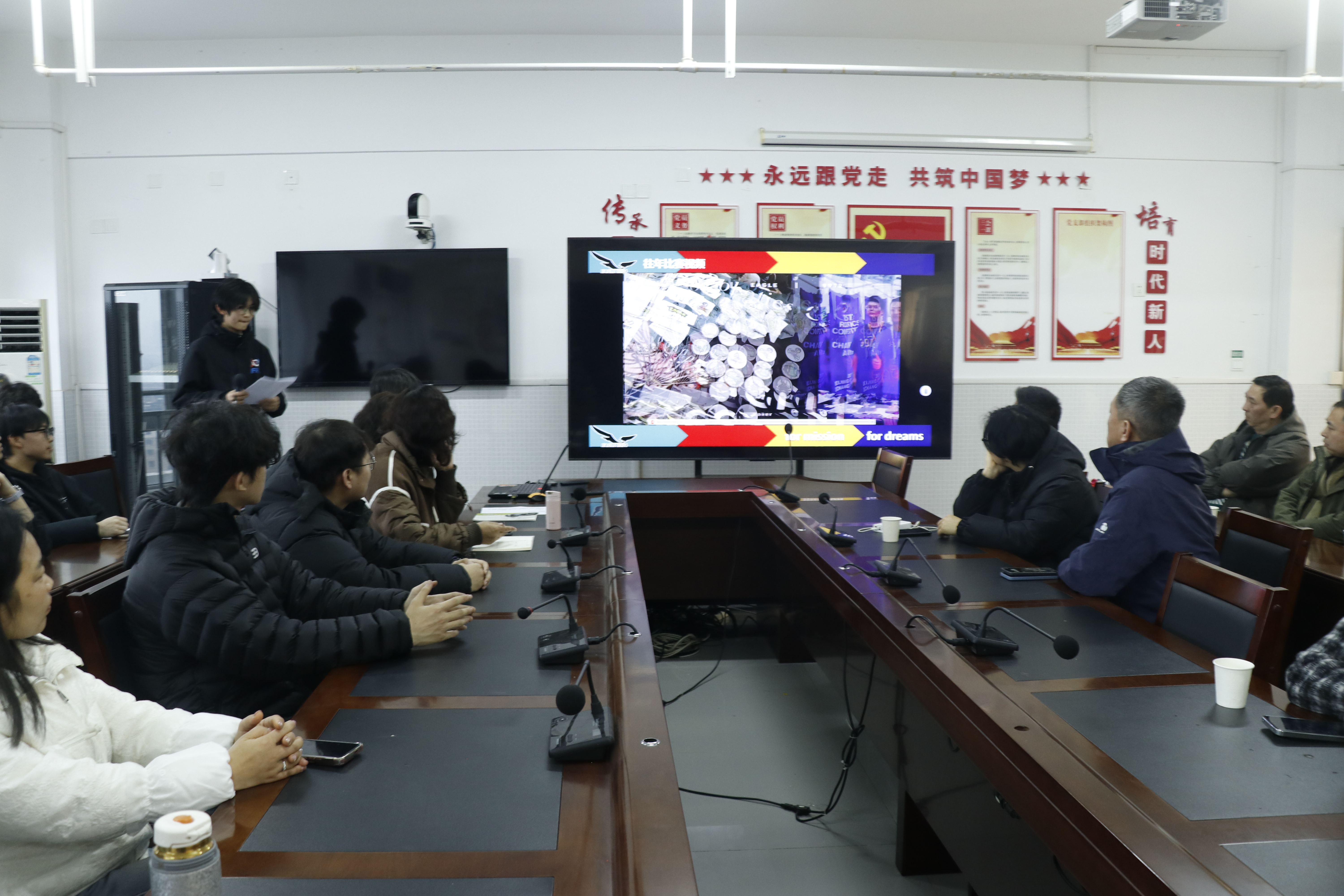 2026年3月1日下午2点30分,我校实训楼11楼会议室迎来了备受瞩目的FRC家长会。此次会议由雏鹰工作室主办,吸引了众多队员家长、工作室导师及全体队员的热情参与,共同为FRC竞赛的备战工作谋划策略。